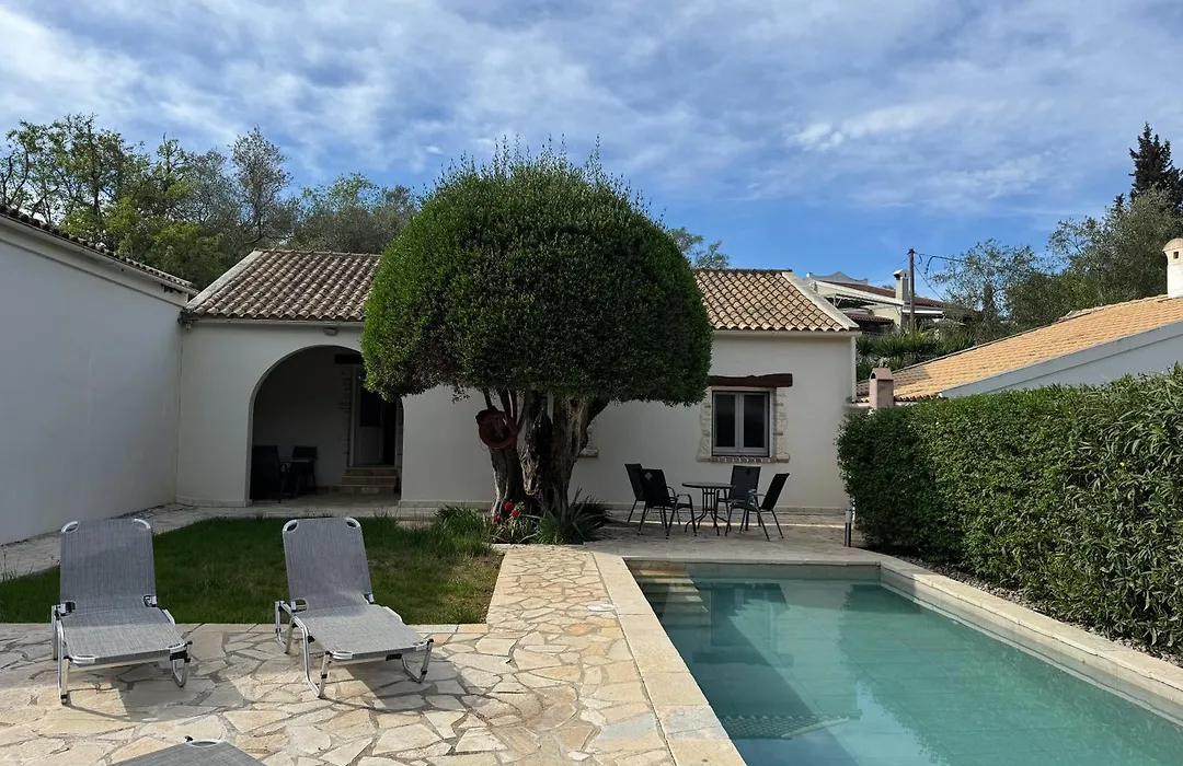 Charmante Petite Maison A Corfou别墅距离佩雷卡斯市中心有5分钟的步行路程,还配有私人游泳池。